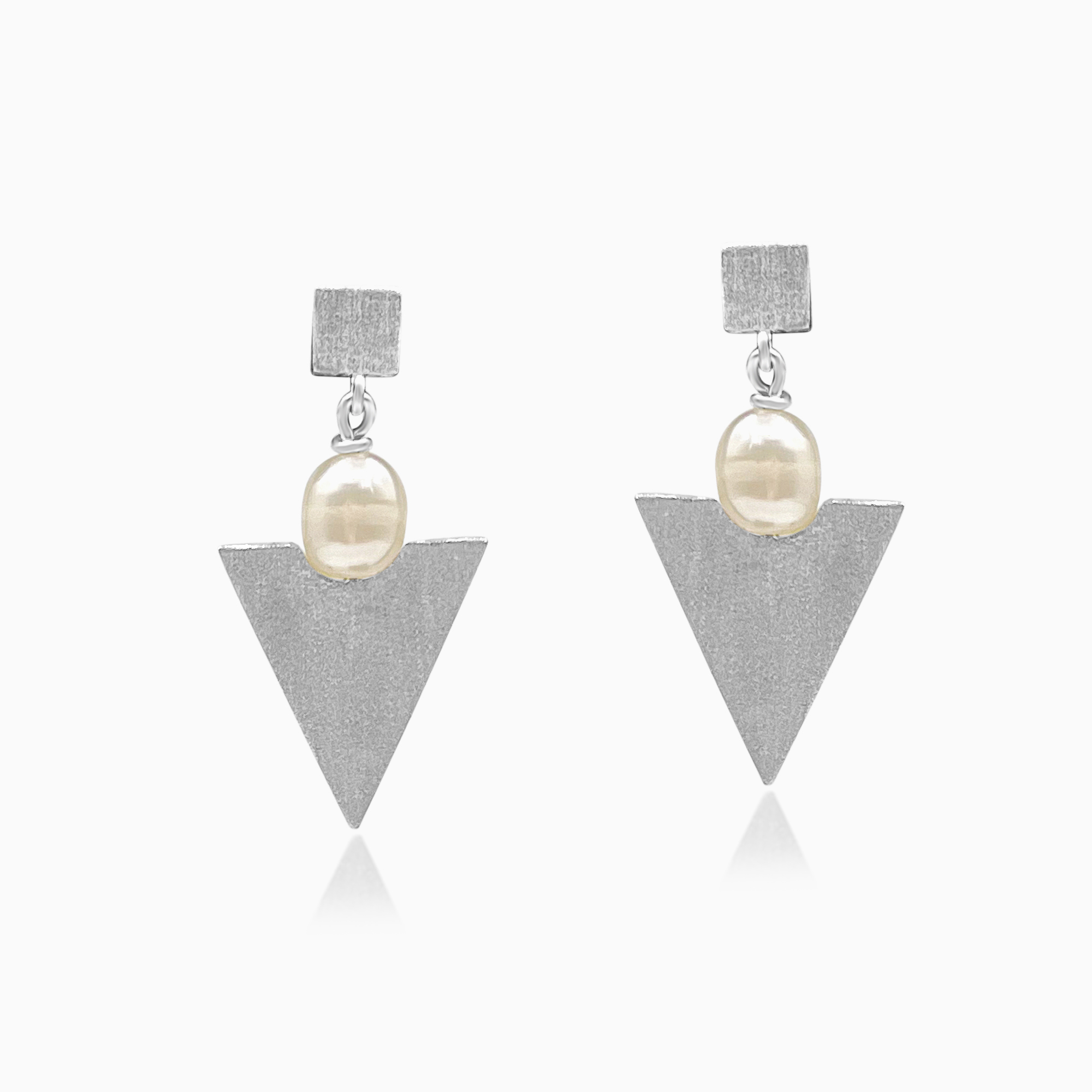 Intricate sterling silver jhumkas with delicate pearl drops timeless elegance in every sway.